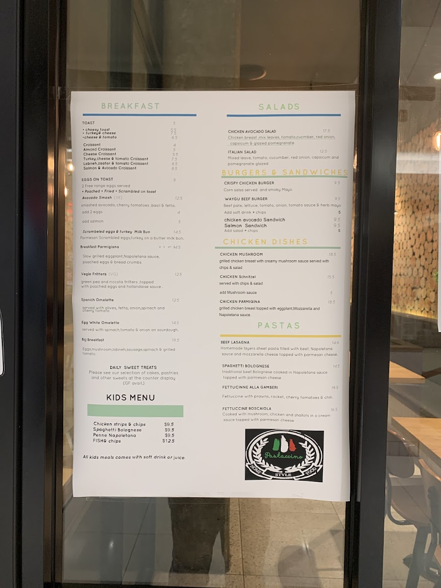 Pastaccino Menu